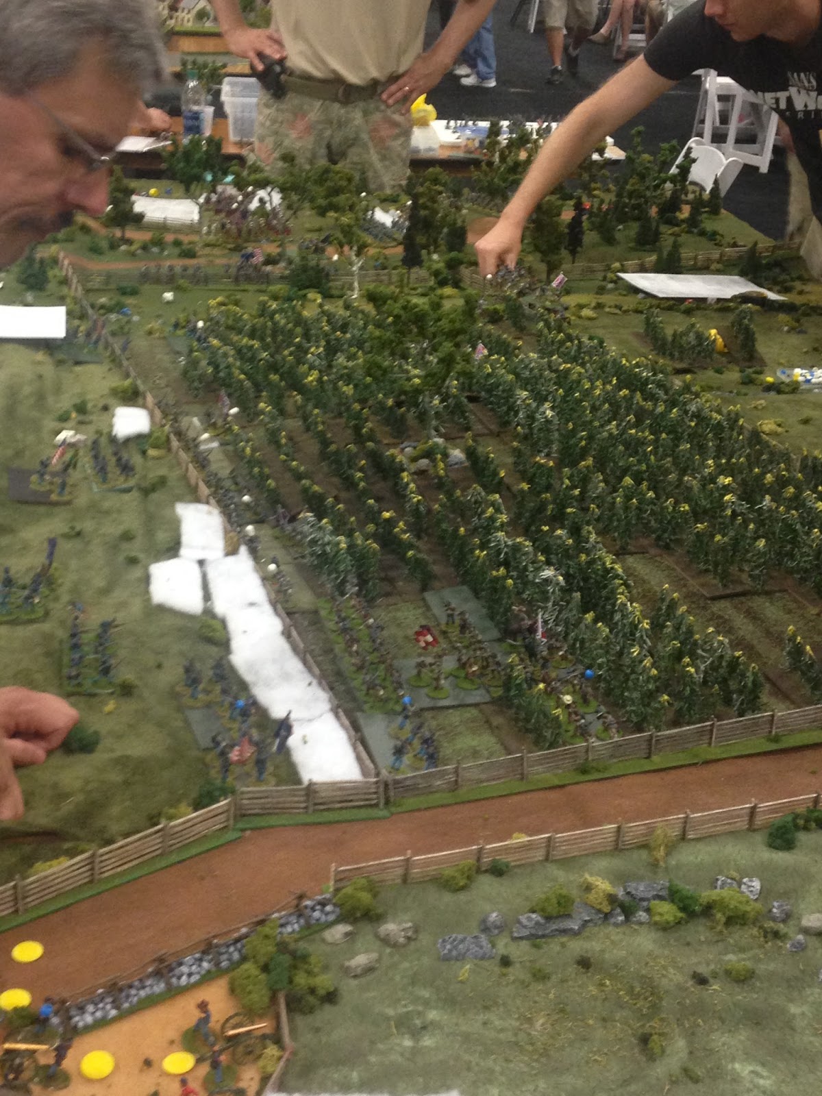 The cornfield is Miller`s Cornfield from the Battle of Antietam using By Company Into Line rule system. My friend and I ran it. Thank you for posting some pictures.